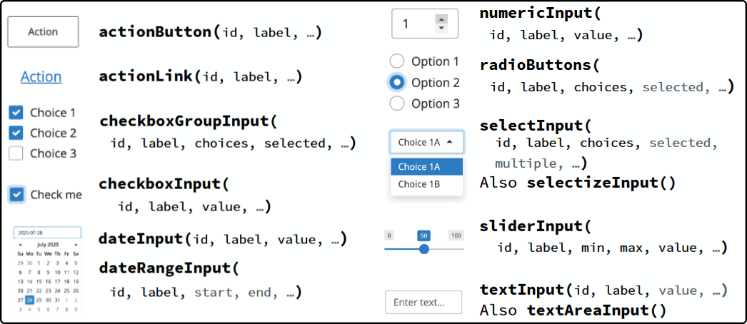 # Construction des plots à afficher dans l'UI : renderPlot(), renderLeaflet(), rendertable()